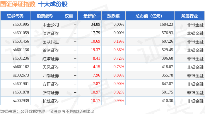 国证保证(399420)指数十大成份股详情如下: