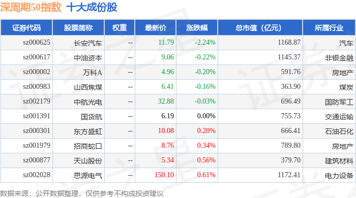 深周期50(399670)指数十大成份股详情如下: