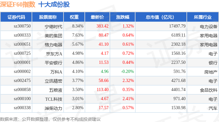 深证F60(399701)指数十大成份股详情如下: