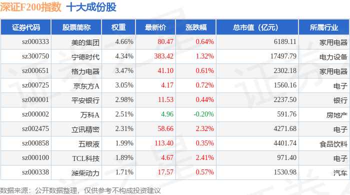 资金流向方面,深证F200(399703)指数成份股当日主力资金净流入合计55.58亿元,游资资金净流出合计44.38亿元,散户资金净流出合计11.2亿元。成份股资金流向详情见下表: