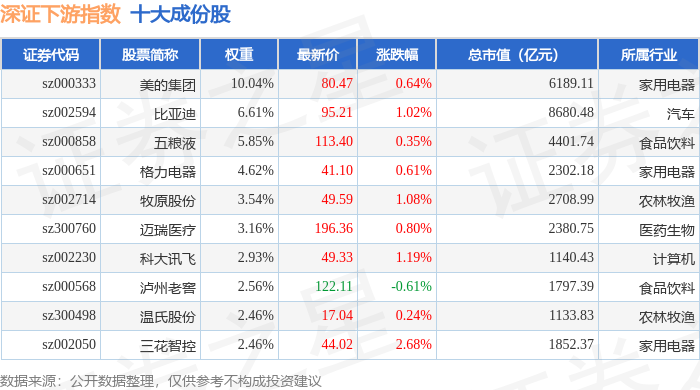 深证下游(399706)指数十大成份股详情如下: