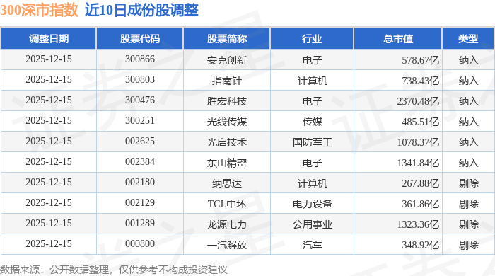 近10日内300深市(399972)指数成份股做了调整,新纳入了6只股票,剔除了4只股票。
