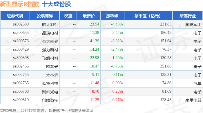近10日内新型显示R(470048)指数成份股做了调整,新纳入了5只股票,剔除了5只股票。