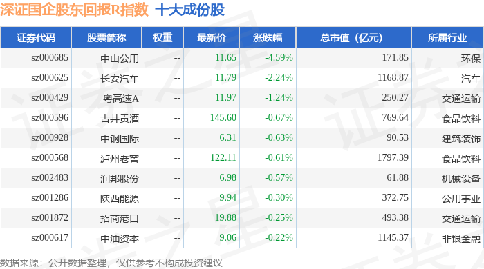 深证国企股东回报R(470064)指数十大成份股详情如下: