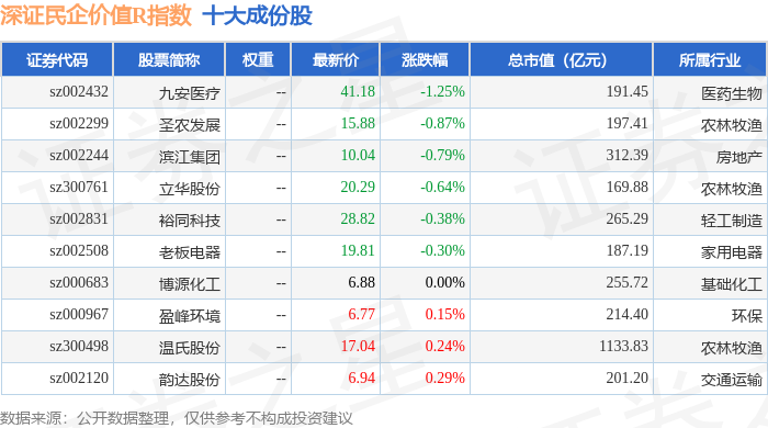 深证民企价值R(470072)指数十大成份股详情如下: