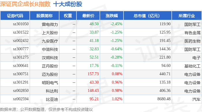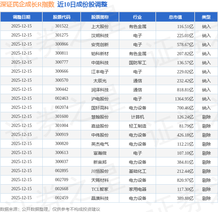 近10日内深证民企成长R(470071)指数成份股做了调整,新纳入了10只股票,剔除了10只股票。