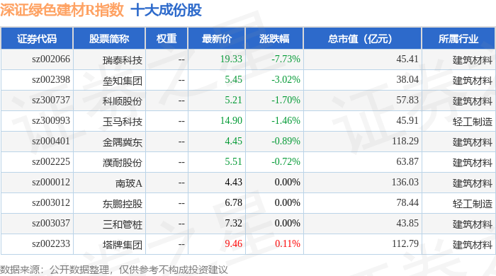 深证绿色建材R(470077)指数十大成份股详情如下: