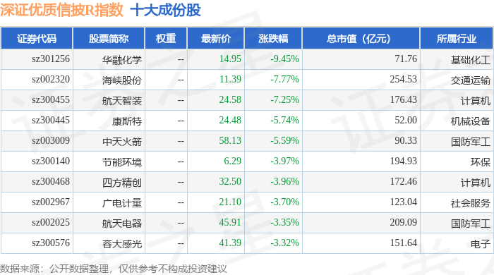 深证优质信披R(470065)指数十大成份股详情如下: