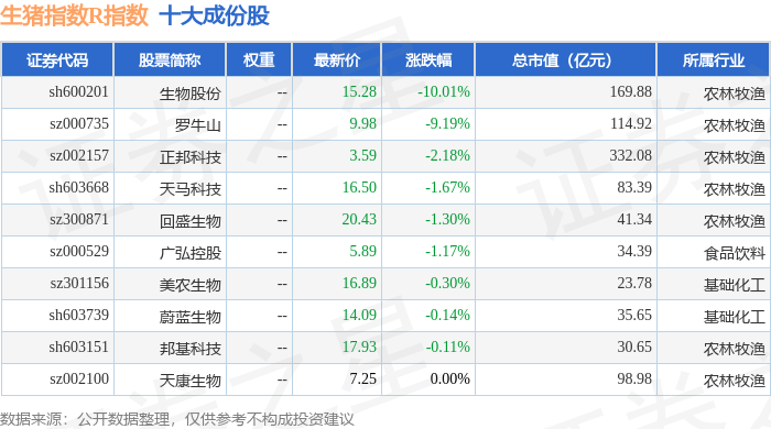 近10日内生猪指数R(480073)指数成份股做了调整,新纳入了4只股票,剔除了1只股票。