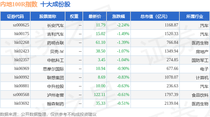 资金流向方面,内地100R(483001)指数成份股当日主力资金净流入合计46.11亿元,游资资金净流出合计34.58亿元,散户资金净流出合计11.53亿元。成份股资金流向详情见下表: