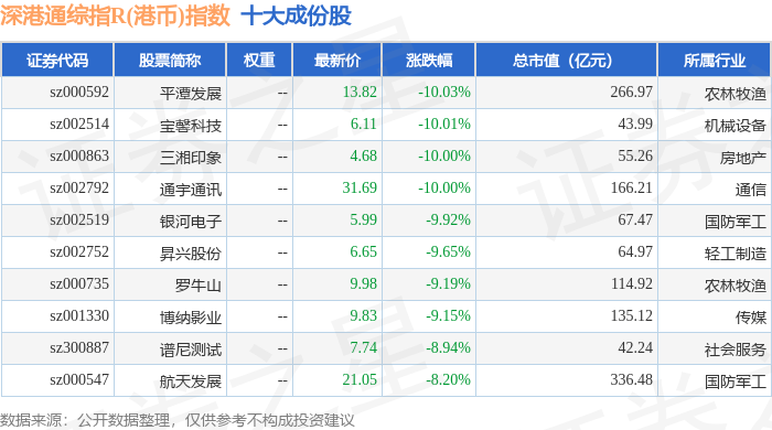 深港通综指R(港币)(483006)指数十大成份股详情如下: