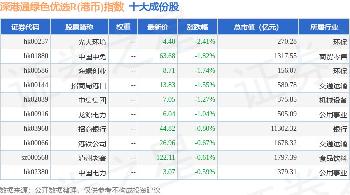 深港通绿色优选R(港币)(483012)指数十大成份股详情如下:
