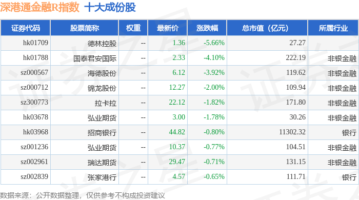 深港通金融R(483025)指数十大成份股详情如下: