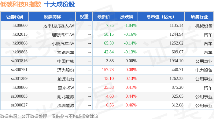 证券之星消息,12月17日,低碳科技R(483160)指数报收于4189.1点,涨1.66%,成交811.77亿元,换手率0.96%。当日该指数成份股中,上涨的有45家,麦格米特以8.22%的涨幅领涨,下跌的有4家,地平线机器人-W以1.84%的跌幅领跌。