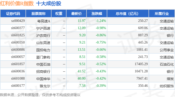 资金流向方面,红利价值R(489016)指数成份股当日主力资金净流出合计1087.89万元,游资资金净流出合计3.7亿元,散户资金净流入合计3.81亿元。成份股资金流向详情见下表: