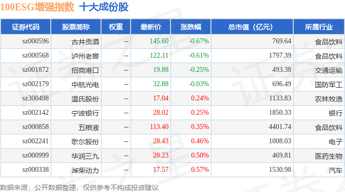 近10日内100ESG增强(970033)指数成份股做了调整,新纳入了6只股票,剔除了6只股票。