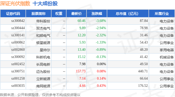 近10日内深证光伏(970035)指数成份股做了调整,新纳入了5只股票,剔除了6只股票。