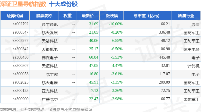 深证卫星导航(970050)指数十大成份股详情如下: