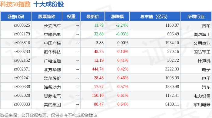 科技50(970080)指数十大成份股详情如下: