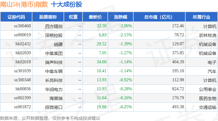近10日内南山50(港币)(980024)指数成份股做了调整,新纳入了1只股票,剔除了1只股票。
