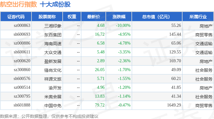 航空出行(980059)指数十大成份股详情如下:
