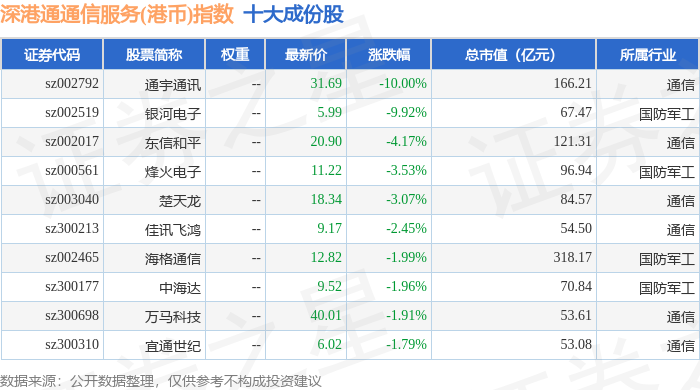 深港通通信服务(港币)(983034)指数十大成份股详情如下: