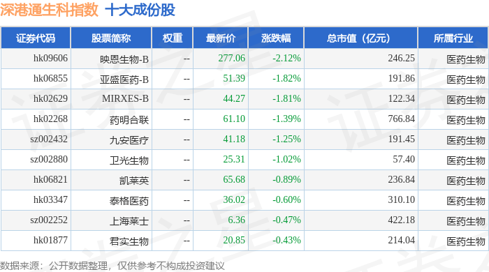 证券之星消息,12月17日,深港通生科(983059)指数报收于7089.41点,涨0.81%,成交94.92亿元,换手率0.68%。当日该指数成份股中,上涨的有44家,昭衍新药以10.36%的涨幅领涨,下跌的有16家,映恩生物-B以2.12%的跌幅领跌。