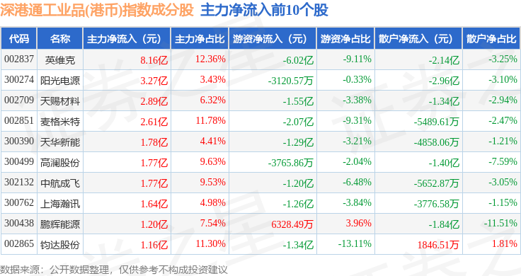 资金流向方面,深港通工业品(港币)(983070)指数成份股当日主力资金净流出合计15.01亿元,游资资金净流出合计27.0亿元,散户资金净流入合计42.0亿元。成份股资金流向详情见下表: