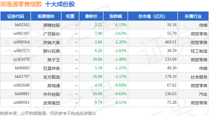 深港通零售(983073)指数十大成份股详情如下: