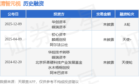 证券之星消息,根据天眼查APP于12月9日公布的信息整理,北京清智元视科技有限公司A轮融资,融资额未披露,参与投资的机构包括华创资本,峰瑞资本。
