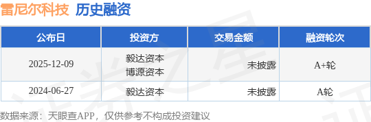 证券之星消息,根据天眼查APP于12月9日公布的信息整理,成都雷尼尔科技有限公司A+轮融资,融资额未披露,参与投资的机构包括毅达资本,博源资本。