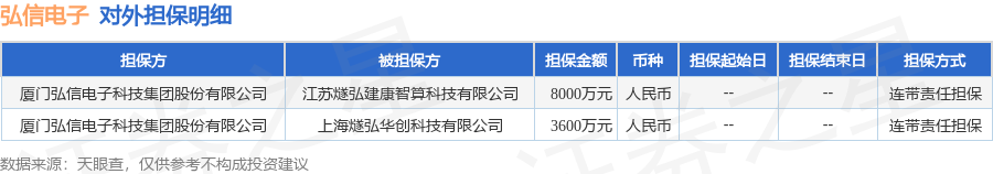 弘信电子12月16日披露2笔对外担保,被担保公司2家。对外担保明细如下表: