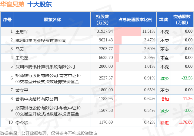 根据华谊兄弟2025年三季报公布的十大股东详情如下: