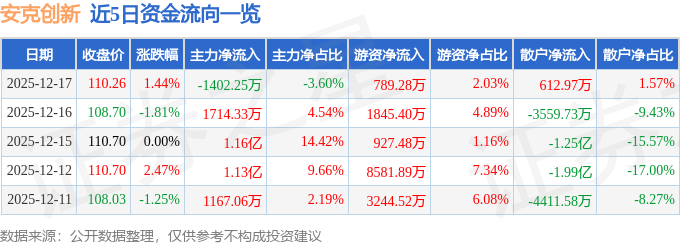 证券之星消息,截至2025年12月17日收盘,安克创新(300866)报收于110.26元,上涨1.44%,换手率1.19%,成交量3.58万手,成交额3.89亿元。