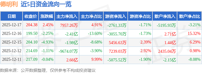 证券之星消息,截至2025年12月17日收盘,德明利(001309)报收于204.38元,上涨2.45%,换手率4.99%,成交量8.03万手,成交额16.19亿元。