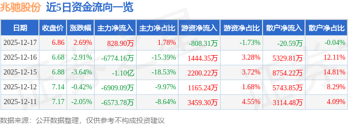 证券之星消息,截至2025年12月17日收盘,兆驰股份(002429)报收于6.86元,上涨2.69%,换手率1.52%,成交量68.86万手,成交额4.66亿元。