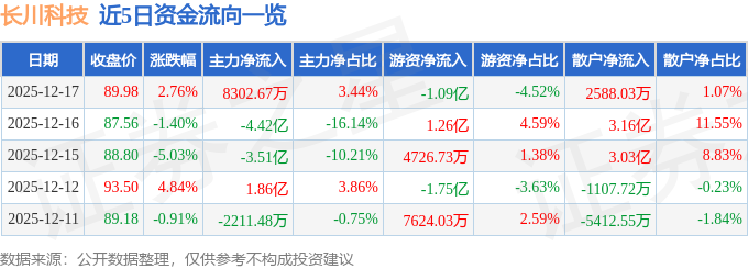 12月17日的资金流向数据方面,主力资金净流入8302.67万元,占总成交额3.44%,游资资金净流出1.09亿元,占总成交额4.52%,散户资金净流入2588.03万元,占总成交额1.07%。