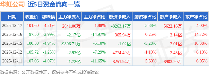 12月17日的资金流向数据方面,主力资金净流入2641.0万元,占总成交额1.88%,游资资金净流出8263.17万元,占总成交额5.88%,散户资金净流入5622.16万元,占总成交额4.0%。