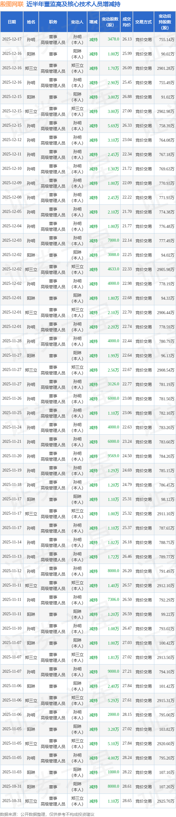 殷图网联近半年内的董监高及核心技术人员增减持详情如下: