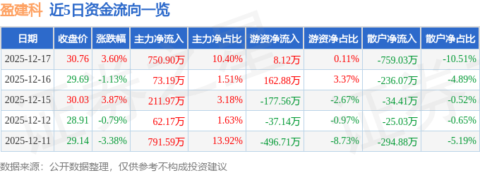 证券之星消息,截至2025年12月17日收盘,盈建科(300935)报收于30.76元,上涨3.6%,换手率3.93%,成交量2.37万手,成交额7223.32万元。