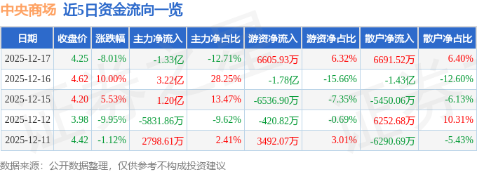 12月17日的资金流向数据方面,主力资金净流出1.33亿元,占总成交额12.71%,游资资金净流入6605.93万元,占总成交额6.32%,散户资金净流入6691.52万元,占总成交额6.4%。