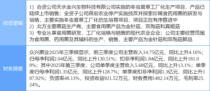 证券之星消息,众兴菌业12月18日涨停收盘,收盘价14.29元。该股于10点21分涨停,未打开涨停,截止收盘封单资金为1728.95万元,占其流通市值0.31%。