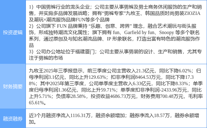 证券之星消息,九牧王12月18日涨停收盘,收盘价15.44元。该股于10点12分涨停,未打开涨停,截止收盘封单资金为3589.89万元,占其流通市值0.4%。