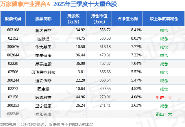 根据2025基金Q3季报公募基金重仓股数据,重仓该股的公募基金共1家,其中持有数量最多的公募基金为万家基金的万家健康产业混合A。万家健康产业混合A目前规模为0.57亿元,最新净值0.6762(12月17日),较上一交易日上涨1.91%,近一年下跌8.74%。该公募基金现任基金经理为王霄音。王霄音在任的基金产品包括:万家研究领航混合A,管理时间为2024年5月23日至今,期间收益率为10.82%。