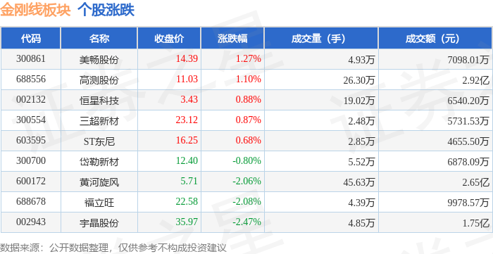 从资金流向上来看,当日金刚线板块主力资金净流出2100.03万元,游资资金净流入94.44万元,散户资金净流入2005.58万元。金刚线板块个股资金流向见下表:
