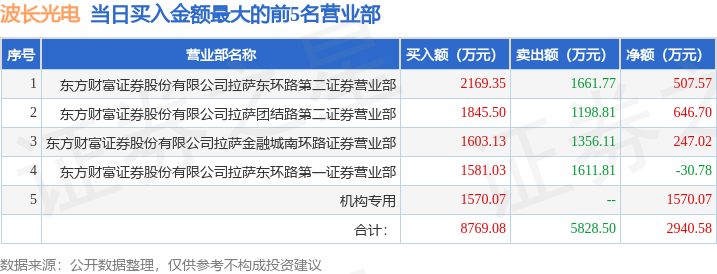 证券之星消息,沪深交易所2025年12月18日公布的交易公开信息显示,波长光电(301421)因日换手率达到30%的前5只证券登上龙虎榜。此次是近5个交易日内第2次上榜。
