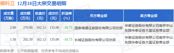 证券之星消息,12月18日德科立发生大宗交易,交易数据如下: