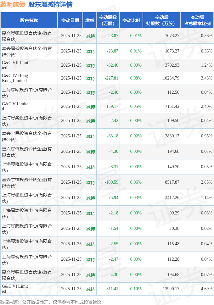 该股近半年内有股东持股变动,合计净减持1182.79万股,股东增减持明细如下表: