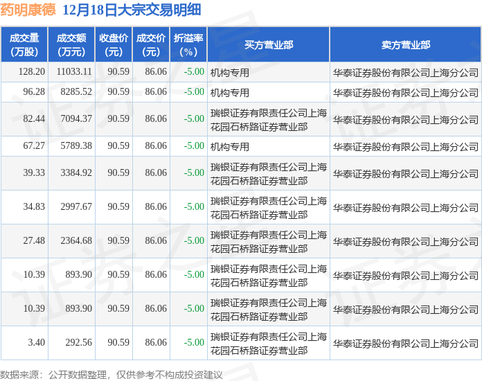 证券之星消息,12月18日药明康德发生大宗交易,交易数据如下: