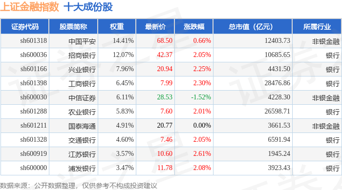 上证金融(000038)指数十大成份股详情如下: